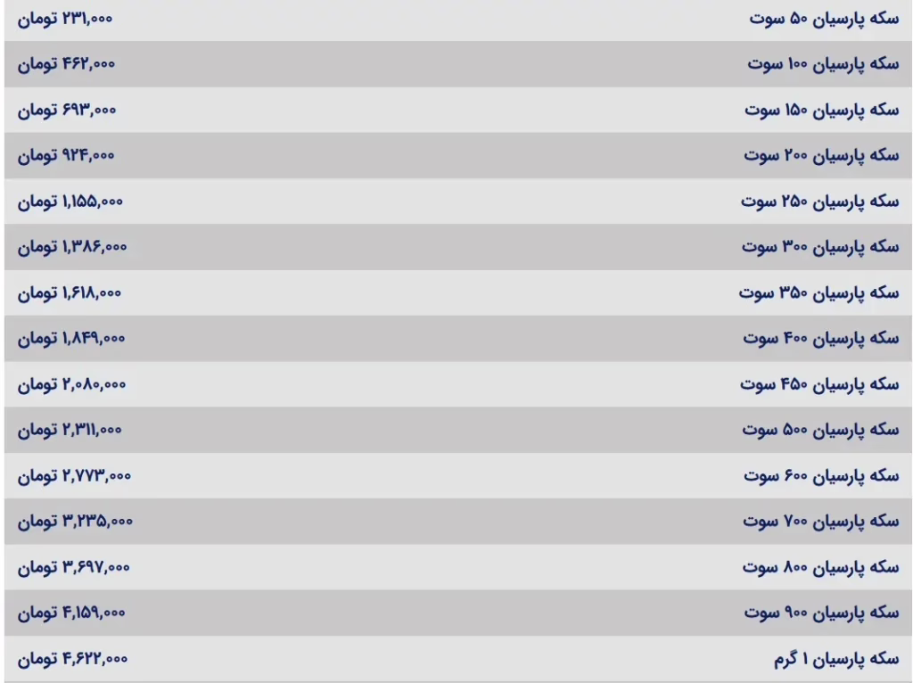 قیمت سکه پارسیان امروز شنبه ۱۰ آذر ۱۴۰۳