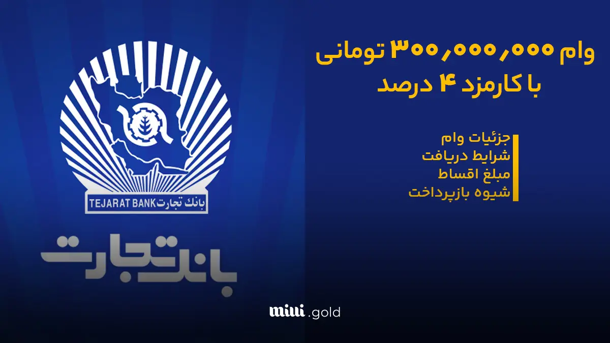 وام ۳۰۰ میلیون تومانی بانک تجارت/ بدون نیاز به سپرده، بدون ضامن با سود ۴درصد و پرداخت سریع